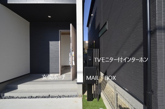 玄関ポーチ脇には縦型の門柱。
