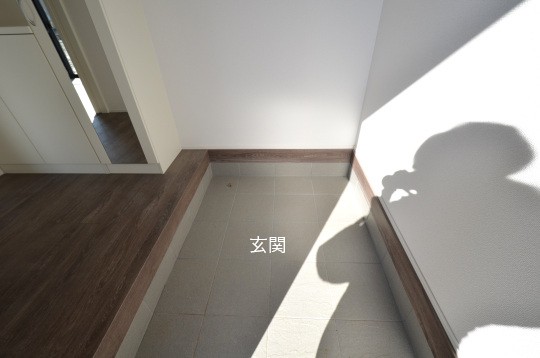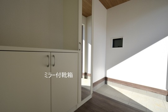玄関ホールには、ミラー付の靴箱。