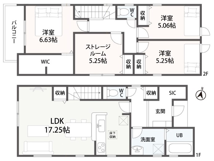 間取りは3SLDK+SIC+WIC。収納スペースが充実しています。