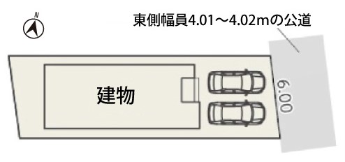 接道状況 東側幅員約4.01~4.02mの公道に間口約6.00m接面