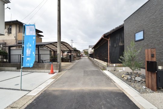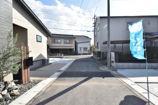 東側の公道は幅員4.01~4.02m。交通量少なめの閑静な住宅街です。