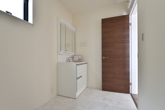 3帖のゆとりある洗面室です。ファーストプラス製のシャンプードレッサーがございます。