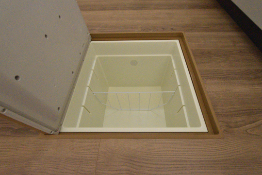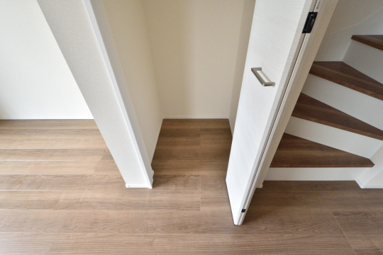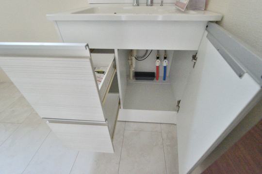 洗面室とキッチンに床下点検口(収納庫付)が設けられています。定期的なメンテナンスや、万が一のトラブルに対応しやすい造りです。