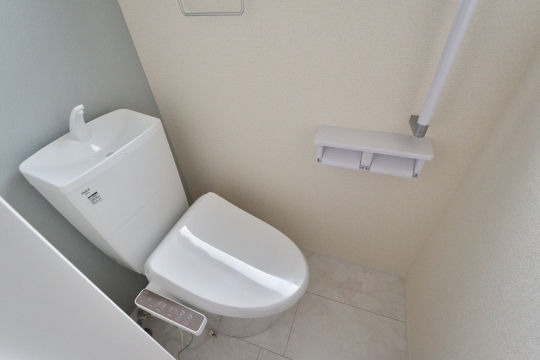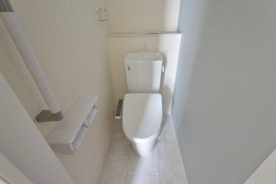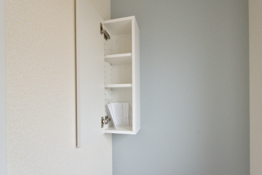2階にはトイレ用品の収納に便利なキャビネットが付いています。