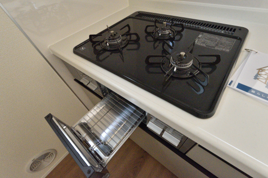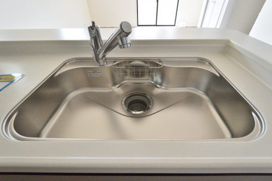 清潔感のあるステンレスシンクに浄水器内蔵ハンドシャワー水栓を標準装備。お手入れ簡単、毎日の調理も快適です。