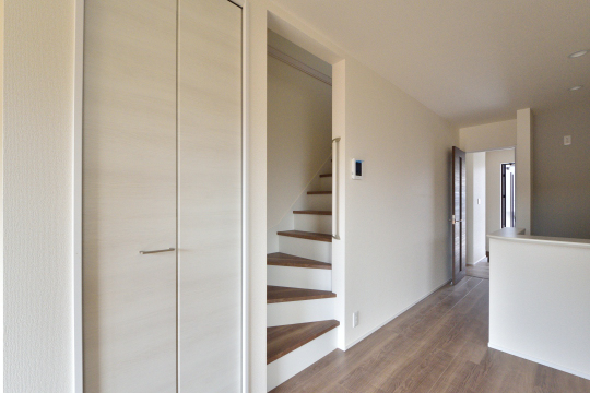 1階のご案内が終わりましたので、2階へ進みましょう。豊明市沓掛町12期【全2棟】1号棟はリビング階段です。