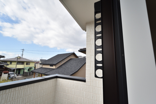 洋室6.63帖からバルコニーへ出ました。晴れの日には陽光が燦燦と降りそそぎ、洗濯物がよく乾きます。
