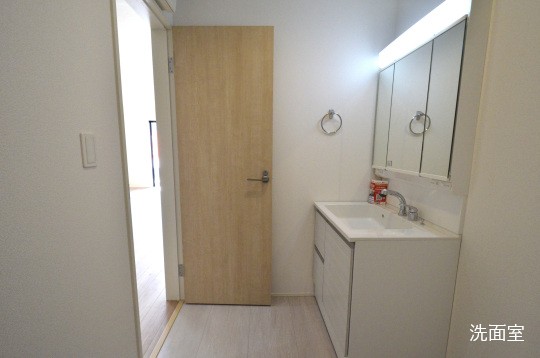 続いて、洗面室へ進みましょう。碧南市六軒町【全5棟】1号棟は水回りが集約された家事動線の良い間取りです。