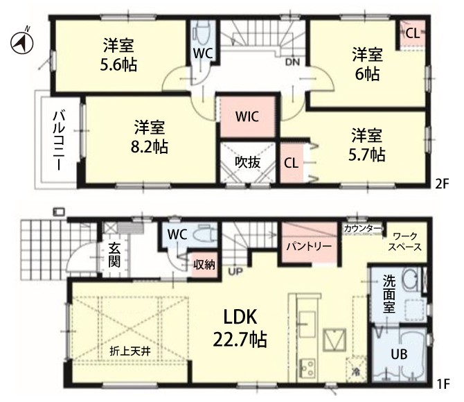 刈谷市野田町 間取り図 2号棟 4LDK+WIC+パントリー