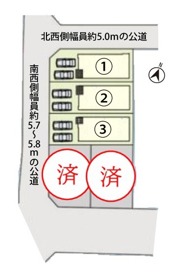 | 接道状況 | 南西側幅員約5.7~5.8mの公道に接面 | ||