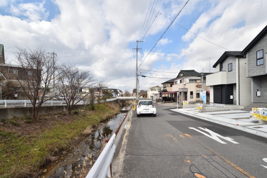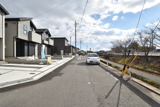 南西側幅員約5.7~5.8mの公道。交通量少なめの閑静な住宅街です。