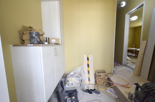 2026年3月中旬の完成に向け、工事は順調に進んでおります。現在、建物内部では壁・天井にプラスターボードの施工が完了しました。今後はパテ処理を行い、下地を整えた後、クロス張りの工程へと進んでいきます。