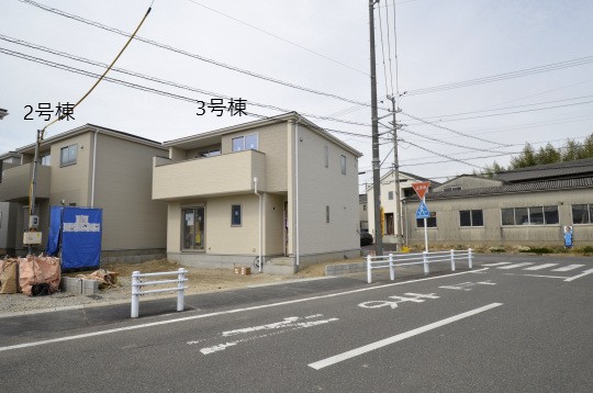 こんにちは。本日は碧南市照光町【全4棟】新築分譲住宅へ参りました。これまで建物を覆っていた養生シートが外され、いよいよ外観がはっきりとご覧いただけるようになりました。