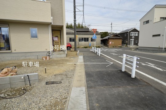 3号棟は角地物件の為、接面道路は2面。北側幅員8.98~9.44m・東側幅員9.97mの公道。