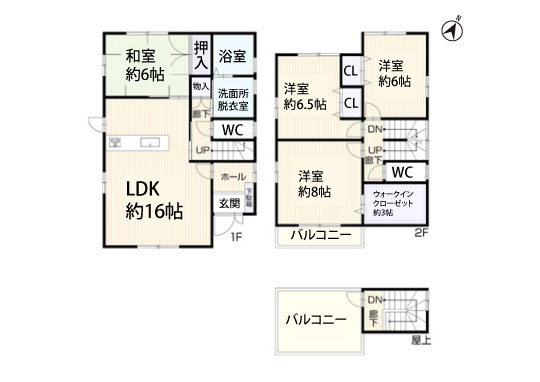 LDK約16帖+南・西の二面採光。