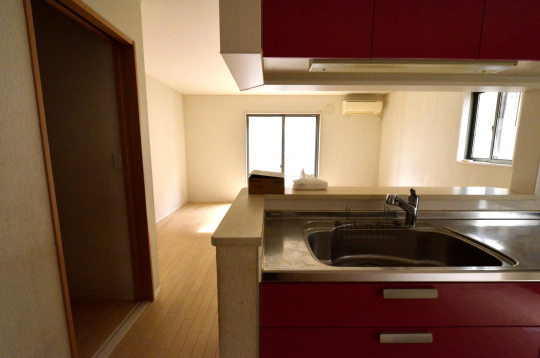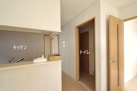 リビングからキッチンを見た図。