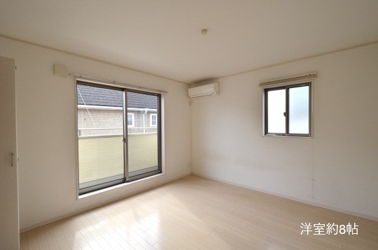 2階/洋室約8帖+南・西の二面採光。