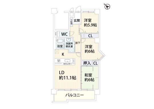 | 専有面積 | 74.39㎡(22.50坪) | バルコニー | 10.49㎡(3.17坪) |